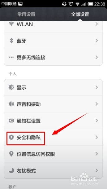 - 找到“锁屏与安全”或“安全”选项。