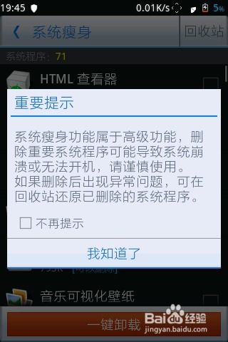通过以上步骤,相信你已经学会了如何删除安卓系统自带软件。现在,让你的手机空间焕然一新,享受更加流畅的使用体验吧!记得在操作过程中要小心谨慎,以免造成不必要的麻烦。祝你成功!
